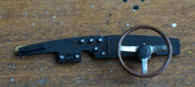 ダッシュボードを艶消し黒塗装 ボディシェル一体なのでウインドウ接着前にやっておくべきだった。ルーフも一旦外した。
